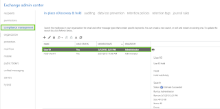 Logue no portal de gerenciamento do Exchange e clique em Compliance Management e selecione o usuário para executar a pesquisa.