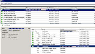 If we take a look at the Job that VMM is currently processing, we can see the steps that are required to create the Failover Cluster, and can monitor the entire process. (If some of the steps fails, it will notice you in the end, and you can also access the well-known cluster-log in %windir%\cluster\reports).
