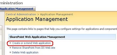 Start by running SharePoint 3.0 Central Administration, then select Application Management and choose the option 'Create or extend web application':