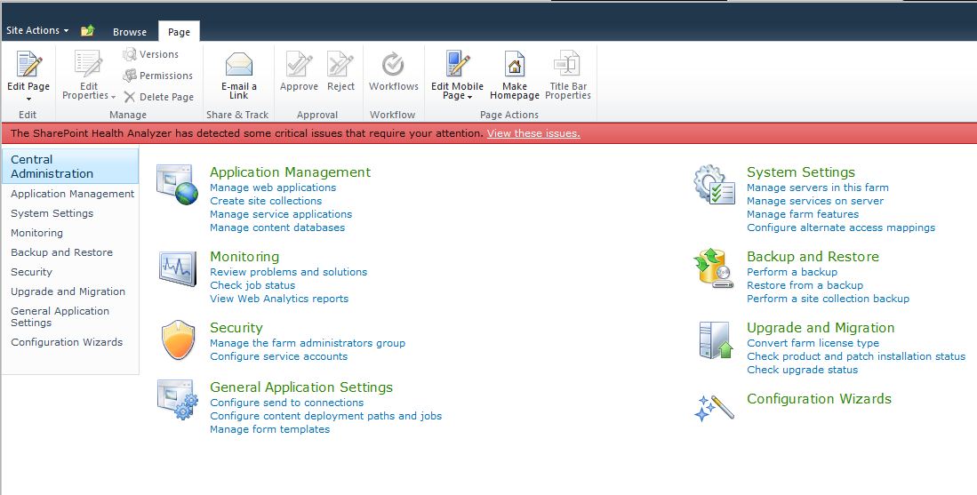 | Ribbon Interface in Microsoft SharePoint 2010 Administration |
