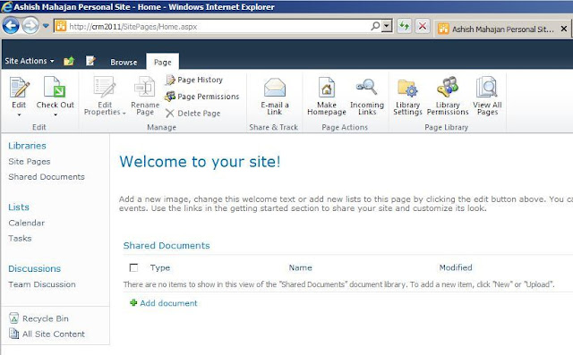 | Ribbon Interface in Microsoft SharePoint 2010 Site |